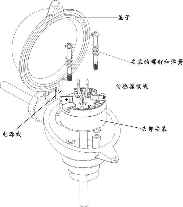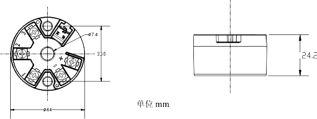 ·通用型一体化温度变送器,用于PT100信号输入,安装于传感器内部(Form B)。