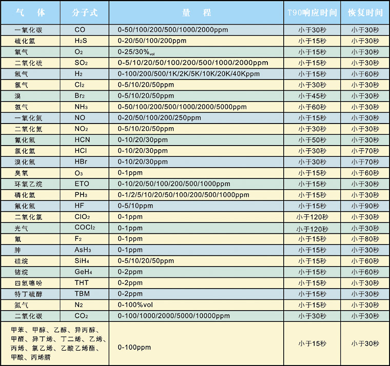 ·T90响应时间:小于30秒(具体依据传感器参数)