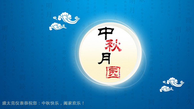 中秋节将至,在此盛太克仪表携全体员工恭祝您: 中秋快乐,阖家欢乐!